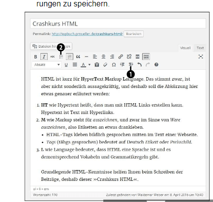In der ersten Übung habe ich gelernt wie man einen neuen Beitrag erstellt was ich eigentlich schon kann. Zu erts habe ich einen Beitrag erstellt dann habe ich eine beliebigen Titel eingegeben und dann ein text darunter. Ich habe das schnell gekonnt da wir dies jetzt schon öfters gemacht haben. In der nächsten Übung habe ich den Quellentext im Browser untersucht. Und zwar habe ich dies gemacht wie folgt: Ich habe als erstes den vorher erstellten Beitrag in einem Browser geöffnet. Dann habe ich mit einem rechten Mausklick das Kontextmenü aufgemacht und habe dann auf Elemente untersuchen geklickt. nachdem erschien der Quellentext in einem eigenen Fensterbereich. In der Übung 41 habe ich gelernt wie man eine Aufzählung zur Nummerierung machen kann. Dies ging sehr schnell man makiert den Bereich welchen ,am dann als Nummerierteliste haben will und klickt dann auf der Formatierungsleiste auf das Symbol. In der letzten Übung habe ich gelernt wie man eine verschachtelte Liste im visuellen Editot erstellt. Ich konnte die Übung gut lösen aber finde es schwer zu erklären was ich genau getan habe.